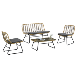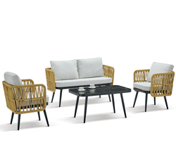 Cómodo jardín 4 personas sofá conjunto resistente a los rayos UV PE ratán sofá conjunto al aire libre muebles de interior