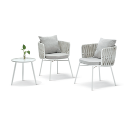 Juegos de mesa al aire libre Venta al por mayor Estilo moderno Cuerda Marco de acero Vidrio templado Mesa y sillas al aire libre Loveseat