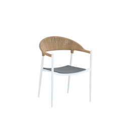 Tablero de asiento de PP antisecado al sol + respaldo de ratán hecho a mano, silla de jardín informal y cómoda