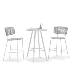 Conjunto de sillas y mesa de bar de 3 piezas moderno, conjunto de bar con marco de acero y cinturón tejido, muebles de jardín y exterior