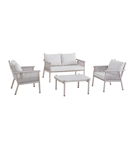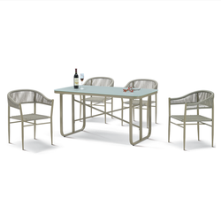 Set di tavoli da esterno all'ingrosso stile moderno corda in acciaio con struttura in vetro temperato tavolo da esterno e sedie Loveseat