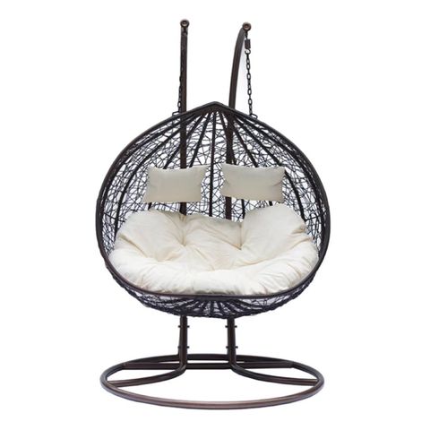 Commercio all'ingrosso di alta qualità moderna doppia sedia a uovo appesa patio esterno appeso sedia a uovo altalena in rattan con supporto
